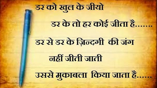 हर रोज आपके पास ऑप्शन होता है कि आप डर कर जीएं या फिर खुलकर जीएं । नए सपने देखने और उन्हें पूरा करने के डायरेक्शन में काम करने के बजाय हम हर रोज किसी न किसी डर के साये में जीते रहते हैं और अपनी खुशियों का गला घोंटते रहते हैं । आप चाहे तो अपने डर को अपनी ‘खुशी’ में बदल सकते हैं ……………..