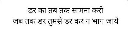 - सोच बदलिए दुनिया बदल जाएगी :- आप जानते हैं कि डर को कौन पैदा करता है ? आपके थॉट । आपके थॉट आपके भीतर ऐसे इमोशंस पैदा करते हैं और फिर आप उसी के मुताबिक काम करने लग जाते हैं । जब भी हम डर के बारे में सोचते हैं , हम अपने ब्रेन को ऐसे इमोशंस से भर डालते हैं और फिर इतने नेगेटिव हो जाते हैं कि लगता है कि कुछ नहीं होने वाला । इसलिए डर से छुटकारा पाना है तो सबसे पहले अपनी सोच बदलिए ।
