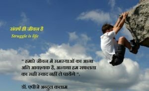 • सक्सेस के लिए संघर्ष :- आज के दौर में हर कोई तेजी से सफल होना चाहता है , पर याद रखें कि जल्दबाजी में कभी सच्ची सक्सेस नहीं मिलती ।सक्सेस के लिए धैर्य रखना पड़ता है और संघर्ष करना पड़ता है । संघर्ष में कई बार हार होती है , पर जो इंसान जीत चाहता है वह कभी मन से हार नहीं मानता और सौ फीसदी ट्राय करता रहता है।